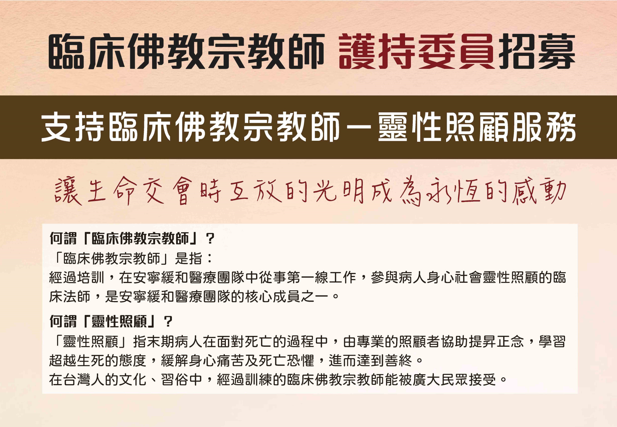 本計畫一年需300萬元經費,投入安寧靈性照顧研究、護持臨床佛教宗教師之服務等。