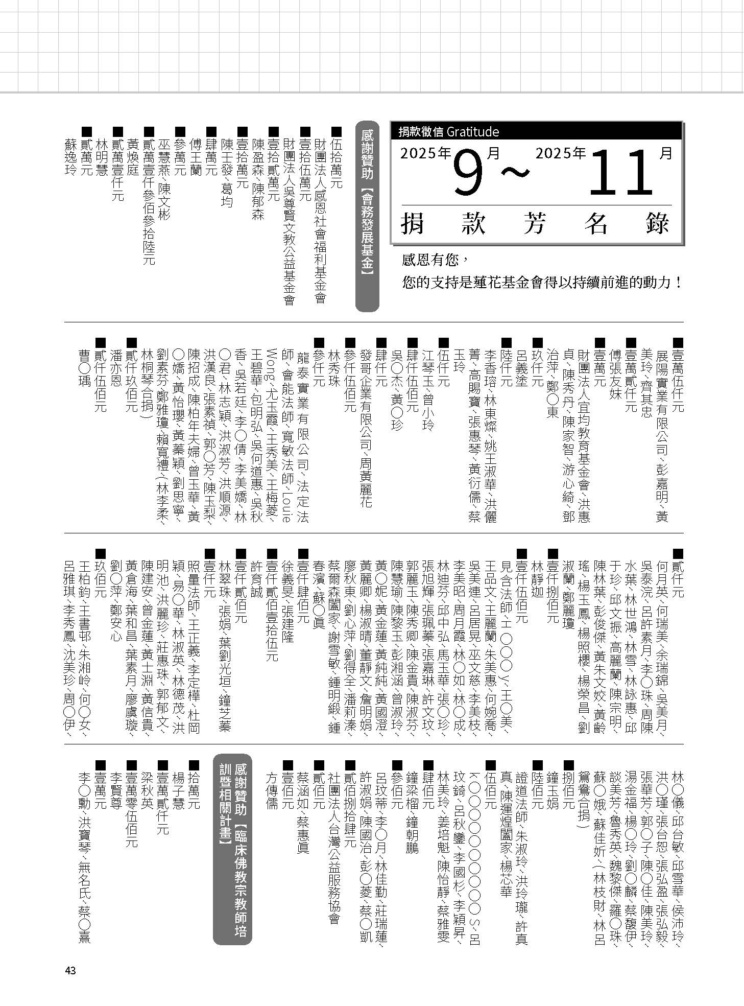 » 2025.09~2025.11捐款徵信