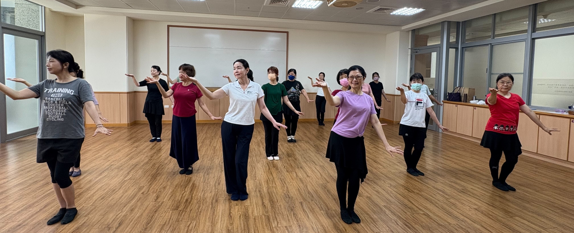 現在學員的平均年齡為五十五歲,最年長的是一位八十四歲的阿嬤,已經上了五年的課。她只要不出門就身體僵硬,很珍惜可以出來活動的機會,也常跟朋友說:「我們的老師好、同學好、教室也好,我每次來都好開心!」
