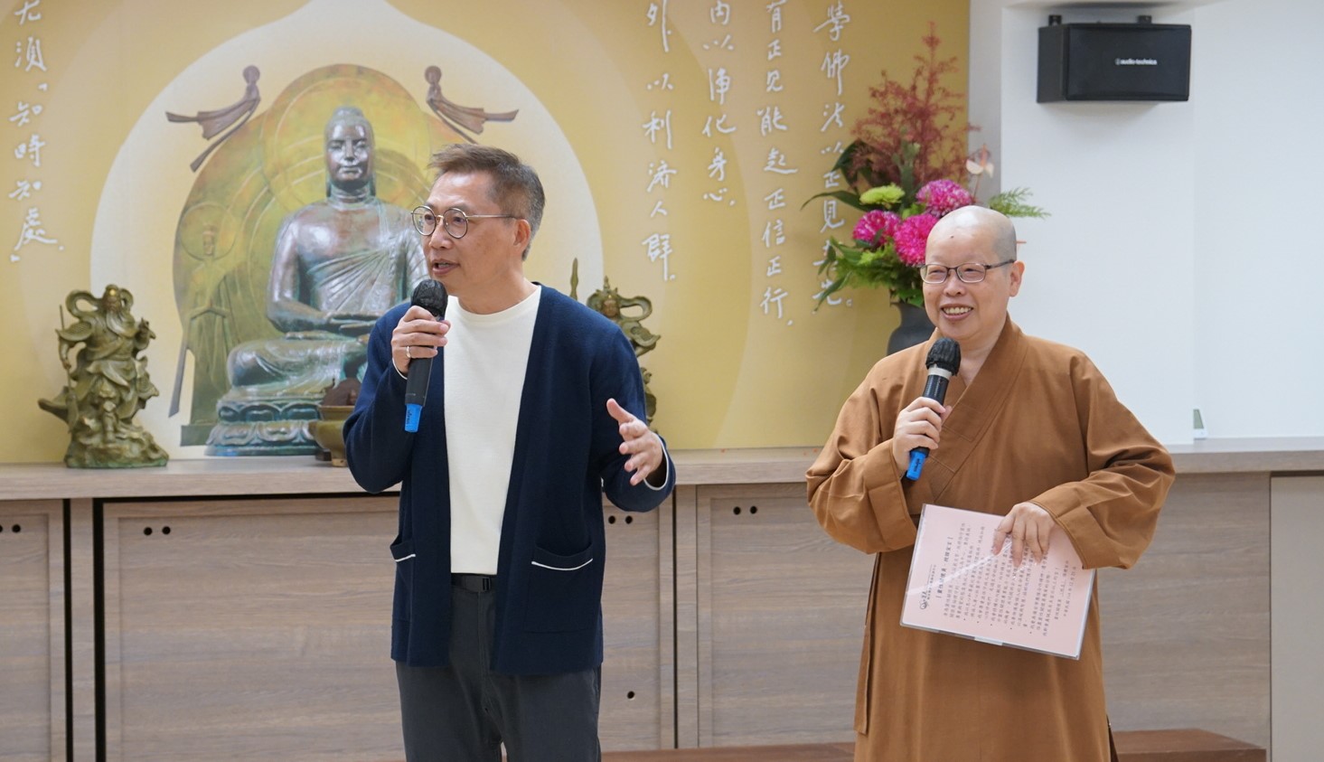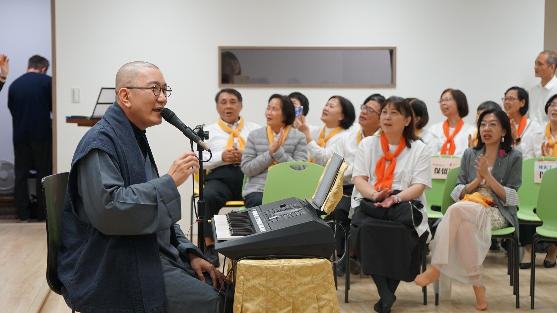 隨後,由明海法師以音樂弘法作為整場活動的圓滿結束。法師以充滿慈悲與力量的歌聲,引領現場回到內心,感受愛與安定,為活動畫下深刻而感動的句點。活動尾聲,基金會亦特別感謝大安覺風佛教藝術中心提供場地與人力支持,象徵長期合作與共同願景。