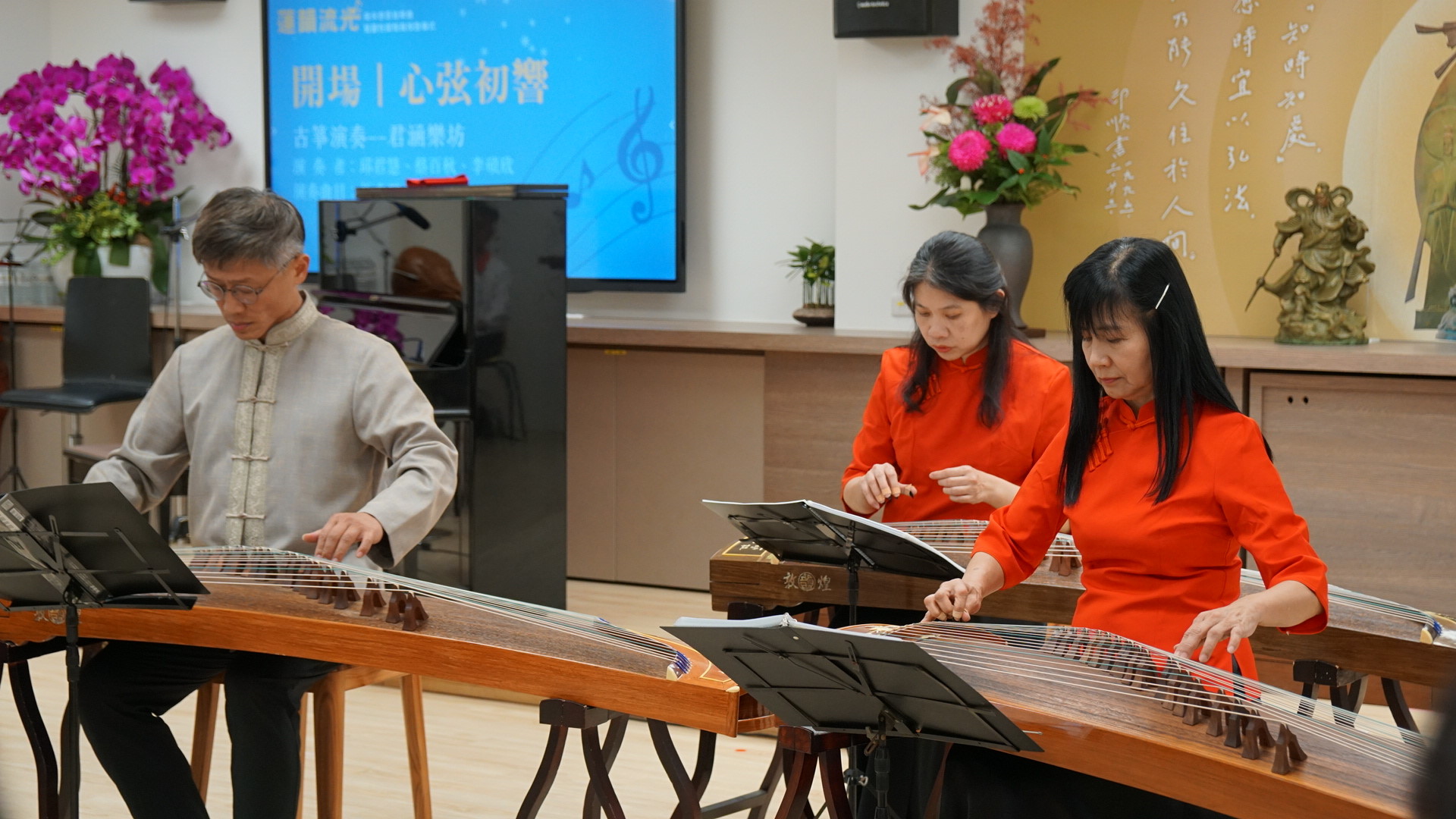音樂會在古箏清澈而安定的琴聲中揭開序幕。上半場音樂會由君涵樂坊以古箏演出《恆春戀曲》、《台灣好》開場,以溫潤的弦音,帶領聽眾慢慢沉澱心緒,象徵靈性關懷中溫柔而安定的陪伴力量。隨後, 由蓮花基金會志工組成的「蓮華之音合唱團」登台演唱《三寶歌》與《城裡的月光》,透過熟悉而深情的旋律,呈現基金會多年來以聲音陪伴末期病人與家屬的實踐經驗。音樂不只是表演,而是一種靠近生命的方式。