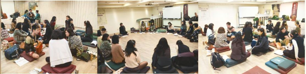 1 月24 至29 日由南華大學生死學系副教授/德國(EZfA)正念減壓教師李燕蕙博士教授的「正念療法與助人專業」初階六日工作坊,則是年年爆額超收,19 名學員中回鍋複習者大有其人,無非希望在六天中遵循李燕蕙老師帶領的主題練習,如:正念傾聽、身體掃描、慈心禪、艱辛禪、止語密集禪修…等正念靜心方法,全心全意專注當下所顯露的一切身心經驗,面對與接納真實的自己,進而找回自我成長、學習與療癒的能力。當課程圓滿結束時,即是每位學員一輩子正念培育旅程的開始。