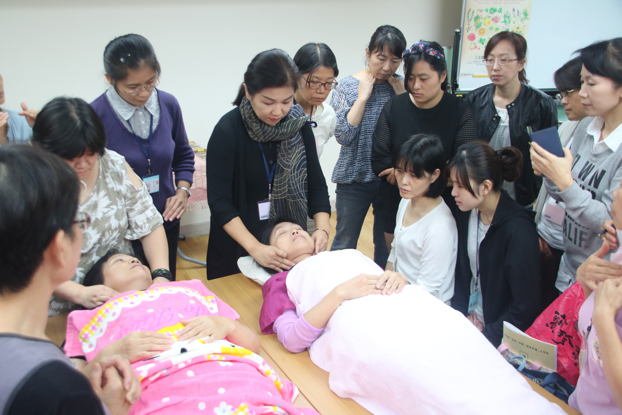 芳香文化是人類和自然最古老、親密與神祕的聯繫。舒緩壓力與增進身心健康是全民常識,透過臨床實證及藥理分析,協助病人復元或減輕不適,更是不爭的事實。無聲無息,無影無蹤的氣味,當你意識到它時,它已深入你的內部,令你難以忘懷,無怪乎每年本會舉辦的「安寧.芳療.健康照護」工作坊總是受學員推舉,名列年度最受歡迎課程之一。11月5、6日二天的學習,30多名學員除了仔細認真聆聽AROMAART芳療整體藝術學院院長林貴春老師講解芳療理論,更在溫佳芯及盧宜萱二位助理的協助指導下,積極參與按摩手技的操作與練習,好讓自己在身負照顧者角色,利用芳療照顧他人之餘,更可以用來自我保健。此外很榮幸地,曾於前年(2014年)來訪的新加坡連氏基金會(Lien Foundation)專案經理林文祥先生,也利用近期來台度假的行程中安排與課學習,認識並體驗了台灣安寧芳療教育的實務面向。